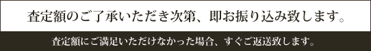 ※発送での買取の場合は査定額ご了承後、翌日までにお振込みいたします。